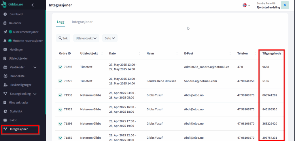 Hjem Kunnskapsbase BRUKERVEILEDNING FOR UTLEIER Avdeling og tilganger Info om adgangskode Hvis du ønsker og flytte på den så må koden bli forandret Integrasjons logg adgangskoder: Var dette til hjelp? Likes: 0 Dislikes: 0