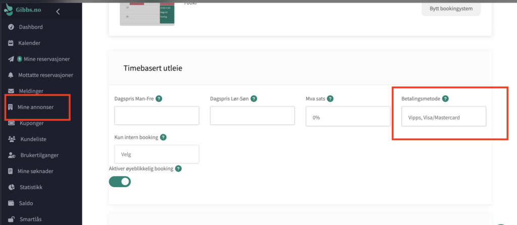 Vi tilbyr våre kunder muligheten til å ta betalt online for deres utleie uten behov for egne avtaler. Vi har en felles avtale med Nets for online betalinger med Vipps, Visa eller Mastercard. Dette kan tas i bruk umiddelbart ved å opprette en annonse/utleieobjekt på gibbs.no.