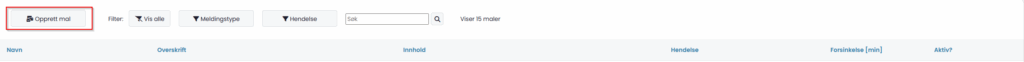 1. Klikk på «Opprett mal» øverst til venstre på maler-siden (se bilde under)