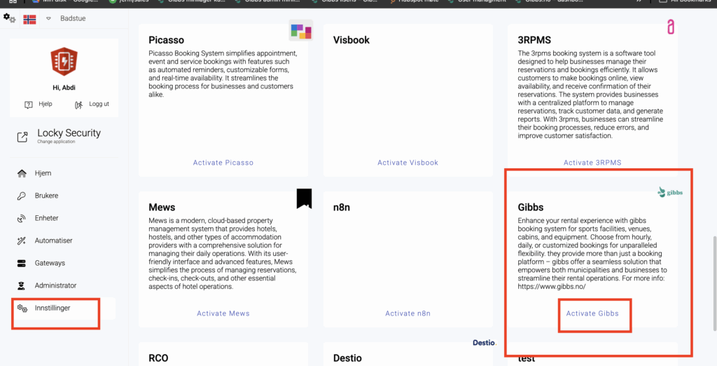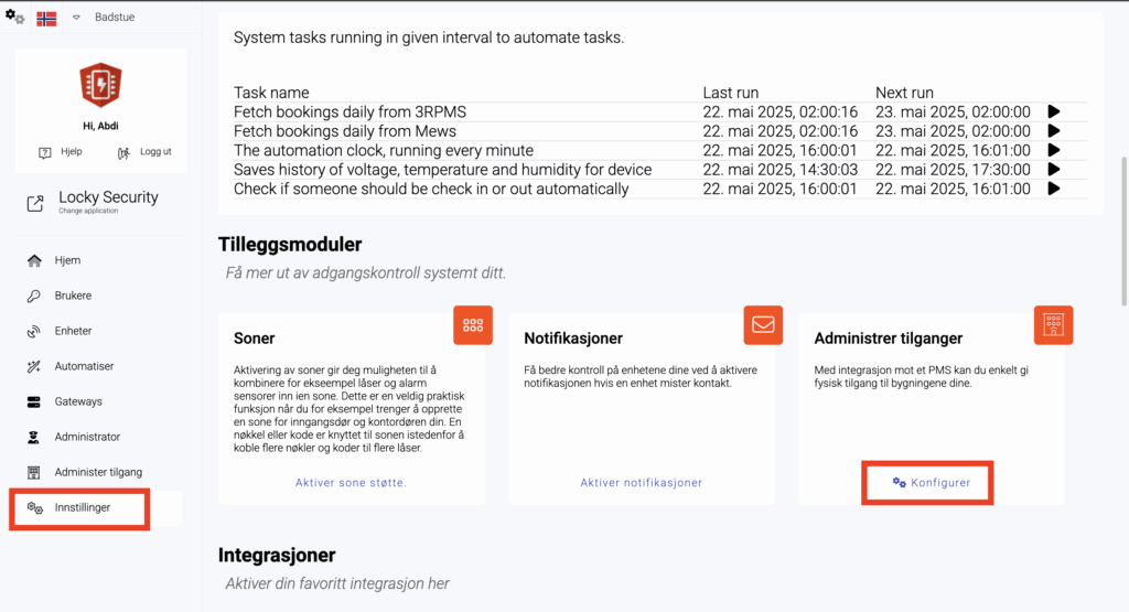 Adressen du får oppgitt fra Locky Tech for integrasjon.