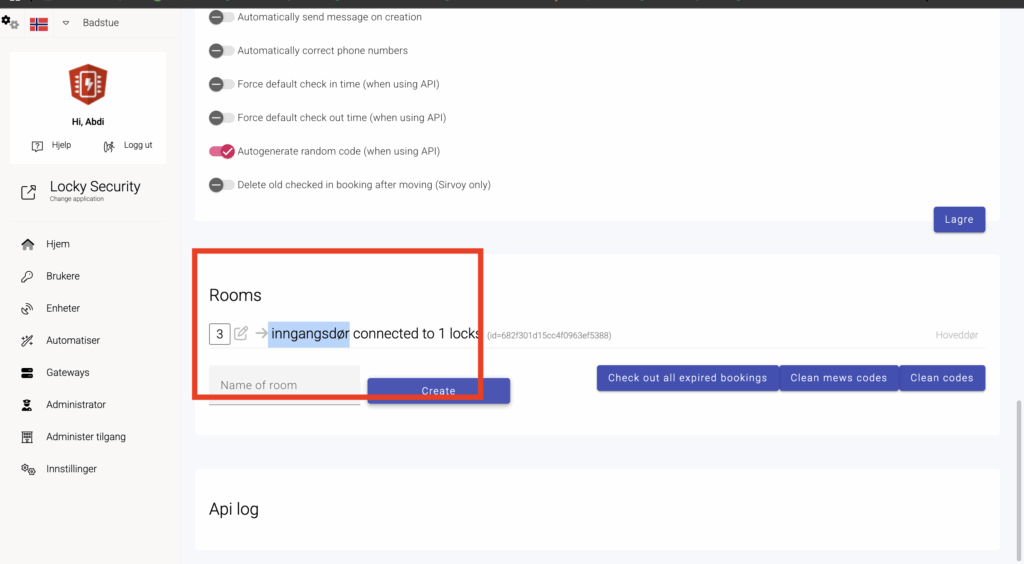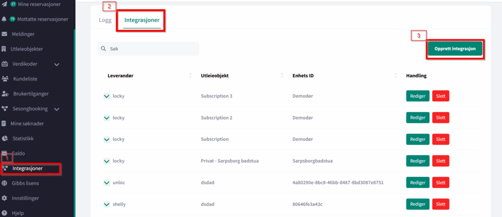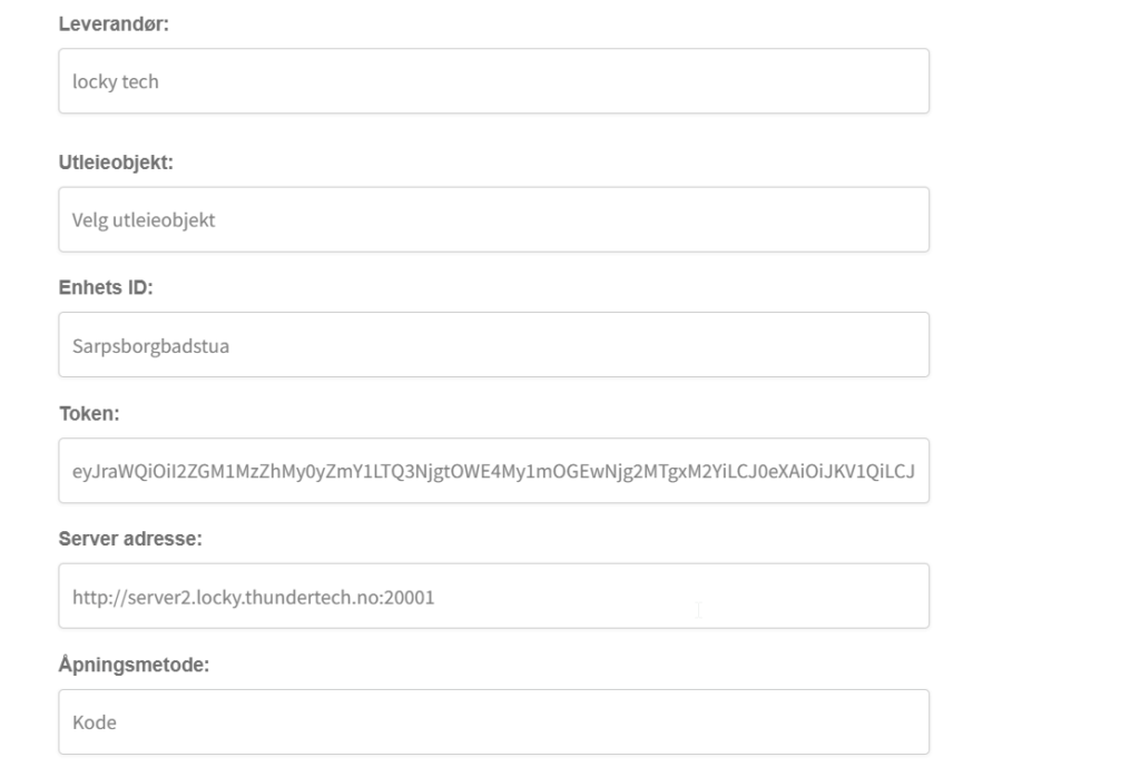 Fyll inn feltene: Dette er hvordan det skal se ut husk og legge til egen Enhets Id og utleieobjektet du ønsker og bruke