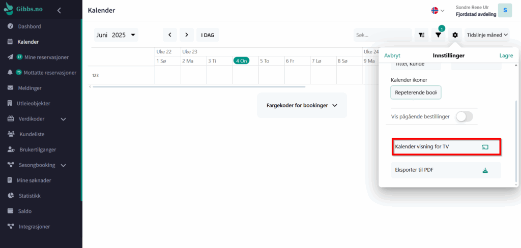 Hjem Kunnskapsbase BRUKERVEILEDNING FOR UTLEIER Avdeling og tilganger hvordan sette opp kalender visning for tv Var dette til hjelp? Likes: 0 Dislikes: 0