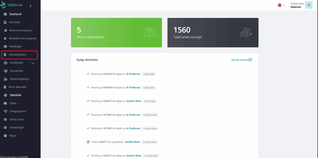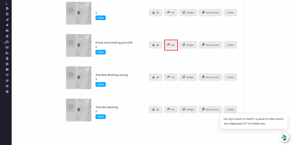 Gå til utleieobjektet du ønsker å bruke, og trykk «Del»