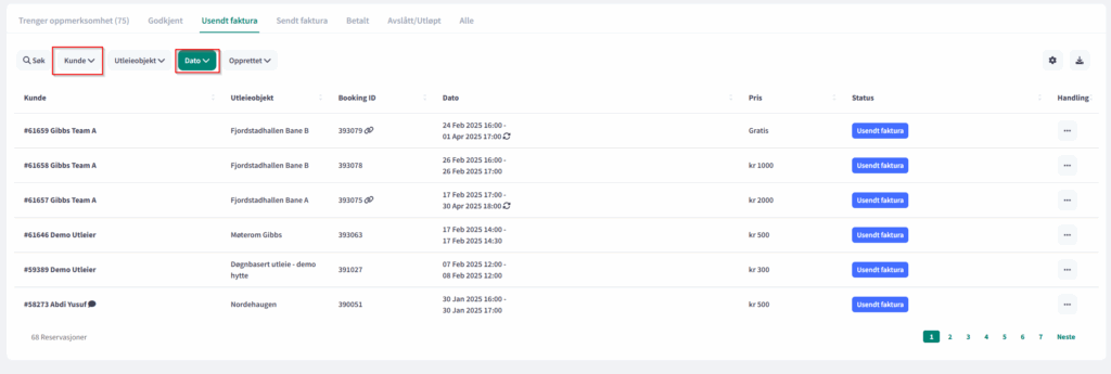 2. Det er mulig å filtrere på både kunde, dato eller annonse/utleieobjekt.